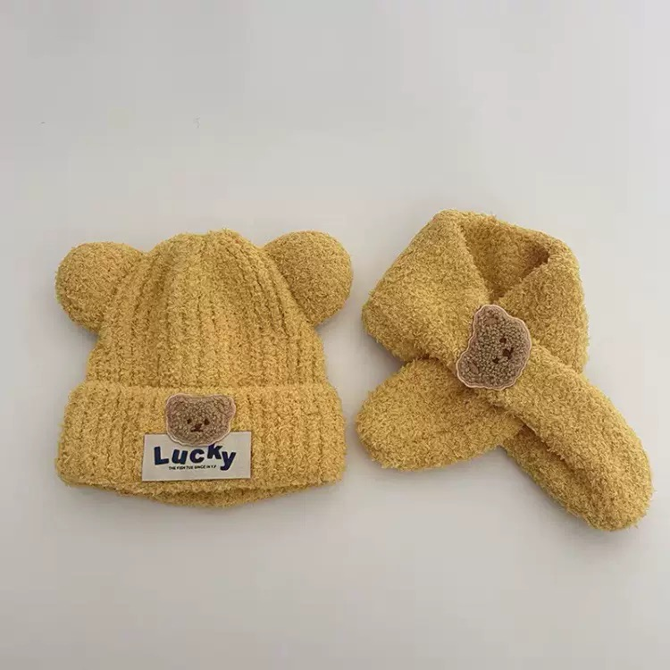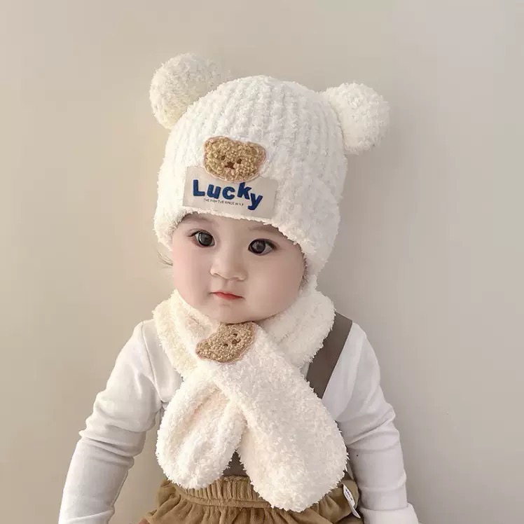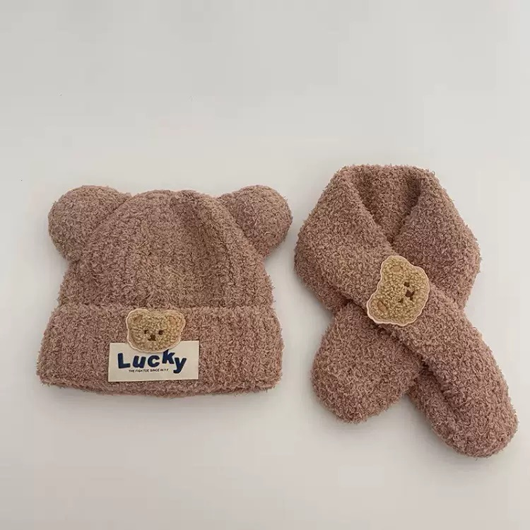 11分鐘前嬰兒帽子秋冬季可愛小熊寶寶毛絨護耳帽圍巾套裝保暖男女童套頭帽 - 商家推薦95%客戶選擇2入組NT$1199