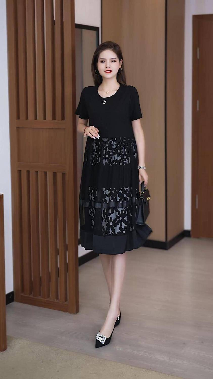 5分鐘前2025夏季新款時尚假兩件寬鬆遮肚網紗連衣裙 - 【尊享三入】僅需NT$1298(均價NT$432)