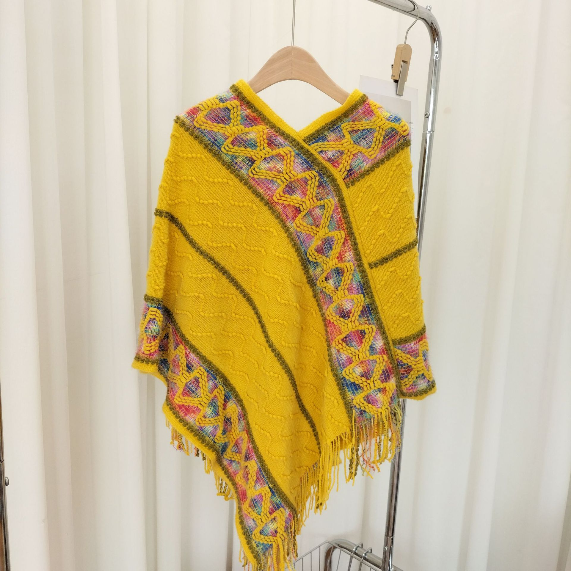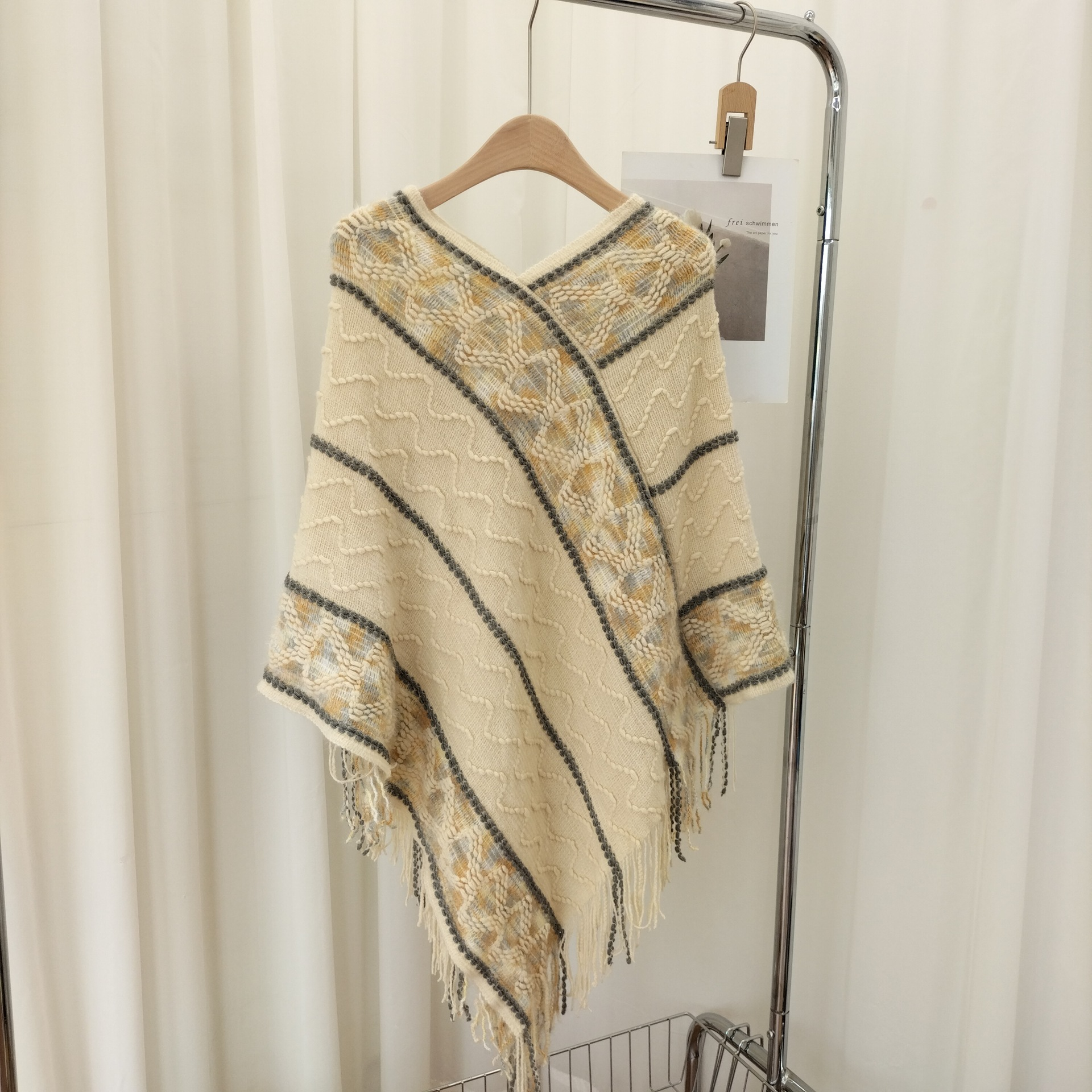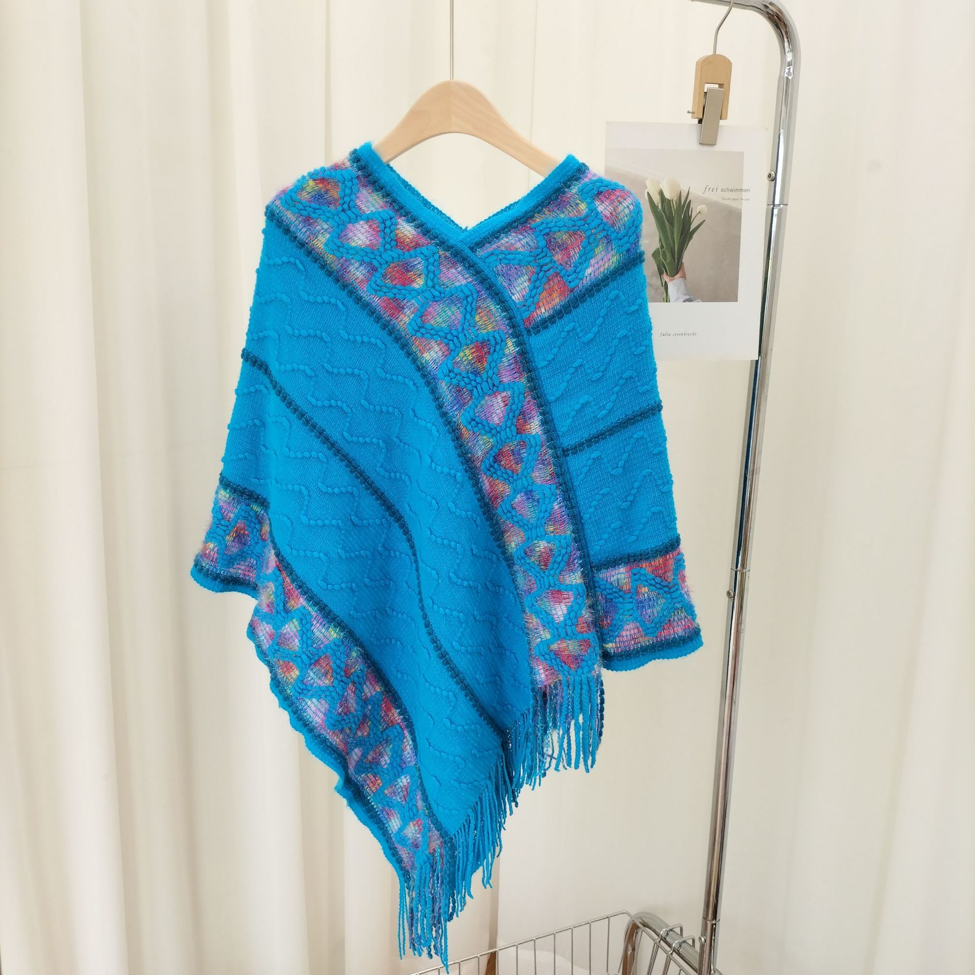 5分鐘前流蘇套頭針織披肩,民族風披肩波浪彩色百搭款 - 95%顧客選擇【超夯活動】2入組-NT$1290