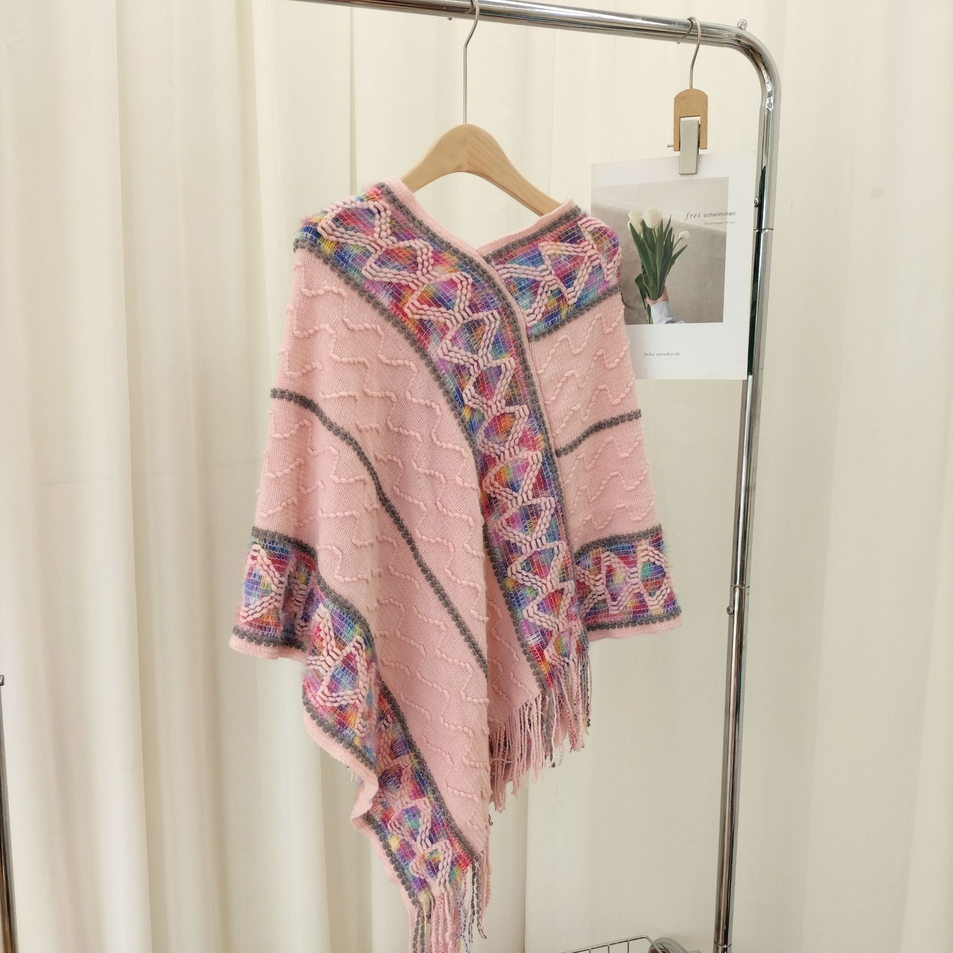 25分鐘前流蘇套頭針織披肩,民族風披肩波浪彩色百搭款 - 95%顧客選擇【超夯活動】2入組-NT$1290