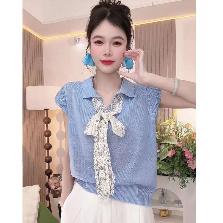半小時前【台灣出貨】火爆折扣中!夏裝新款蕾絲拼接蝴蝶結冰絲針織衫 - 【三入組】任選3件 NT$ 1080