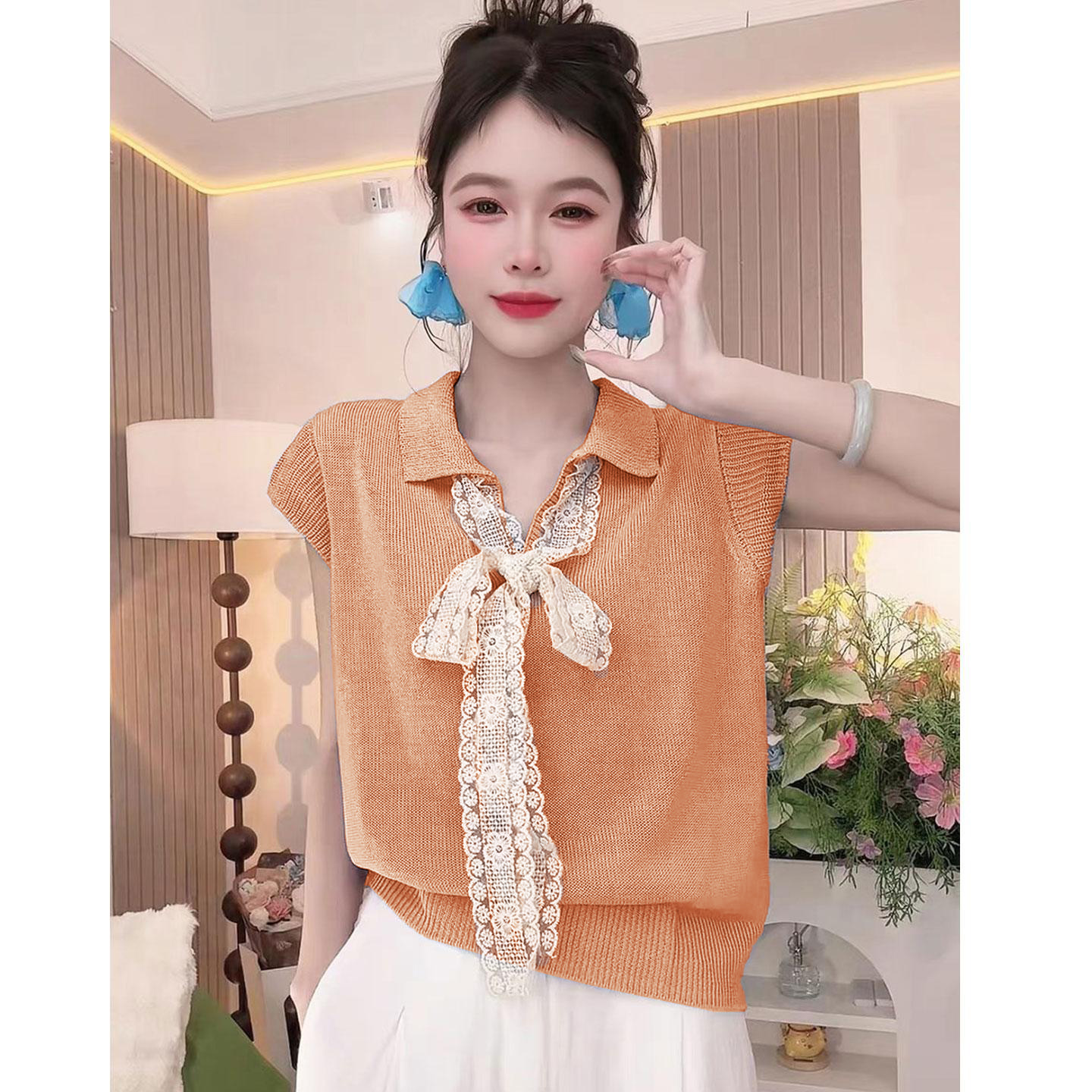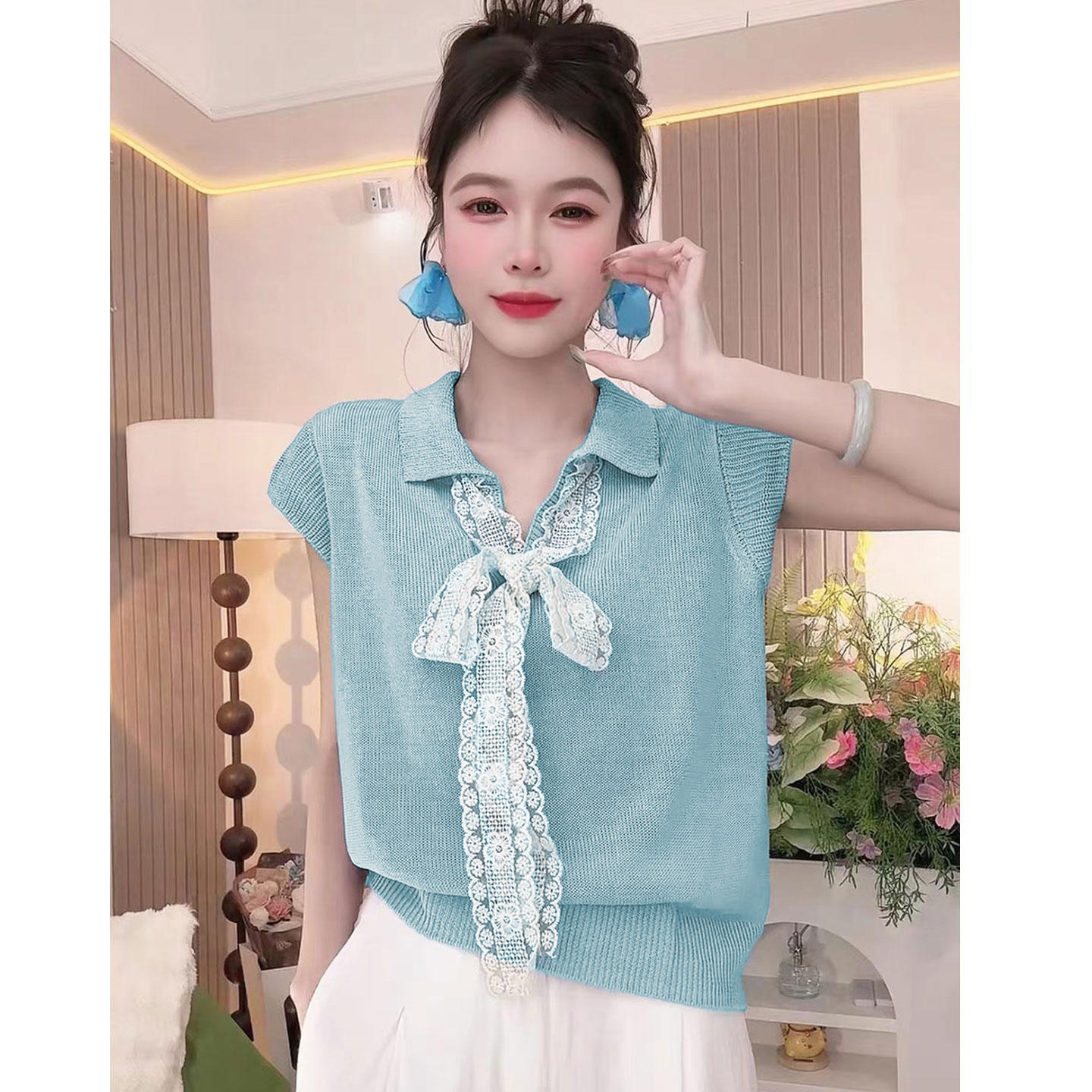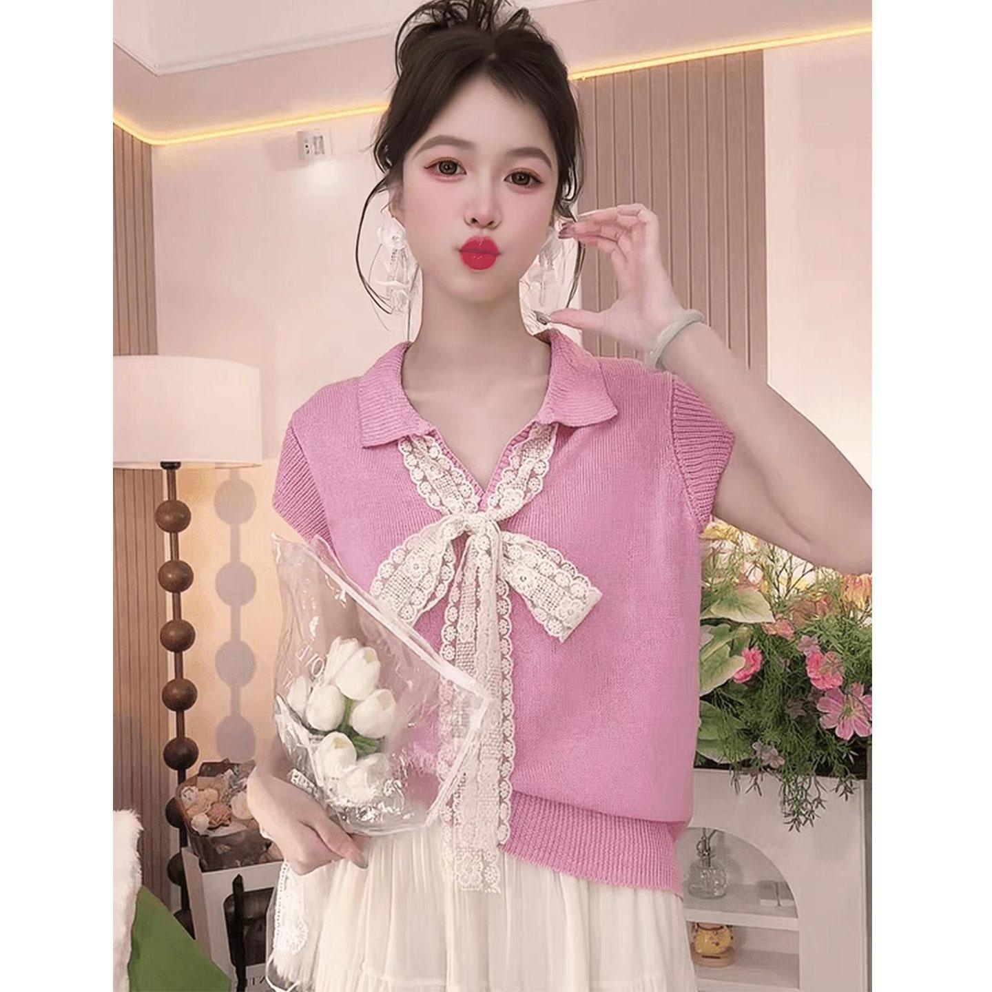 5分鐘前【台灣出貨】火爆折扣中!夏裝新款蕾絲拼接蝴蝶結冰絲針織衫 - 【四入組】任選4件 NT$ 1380