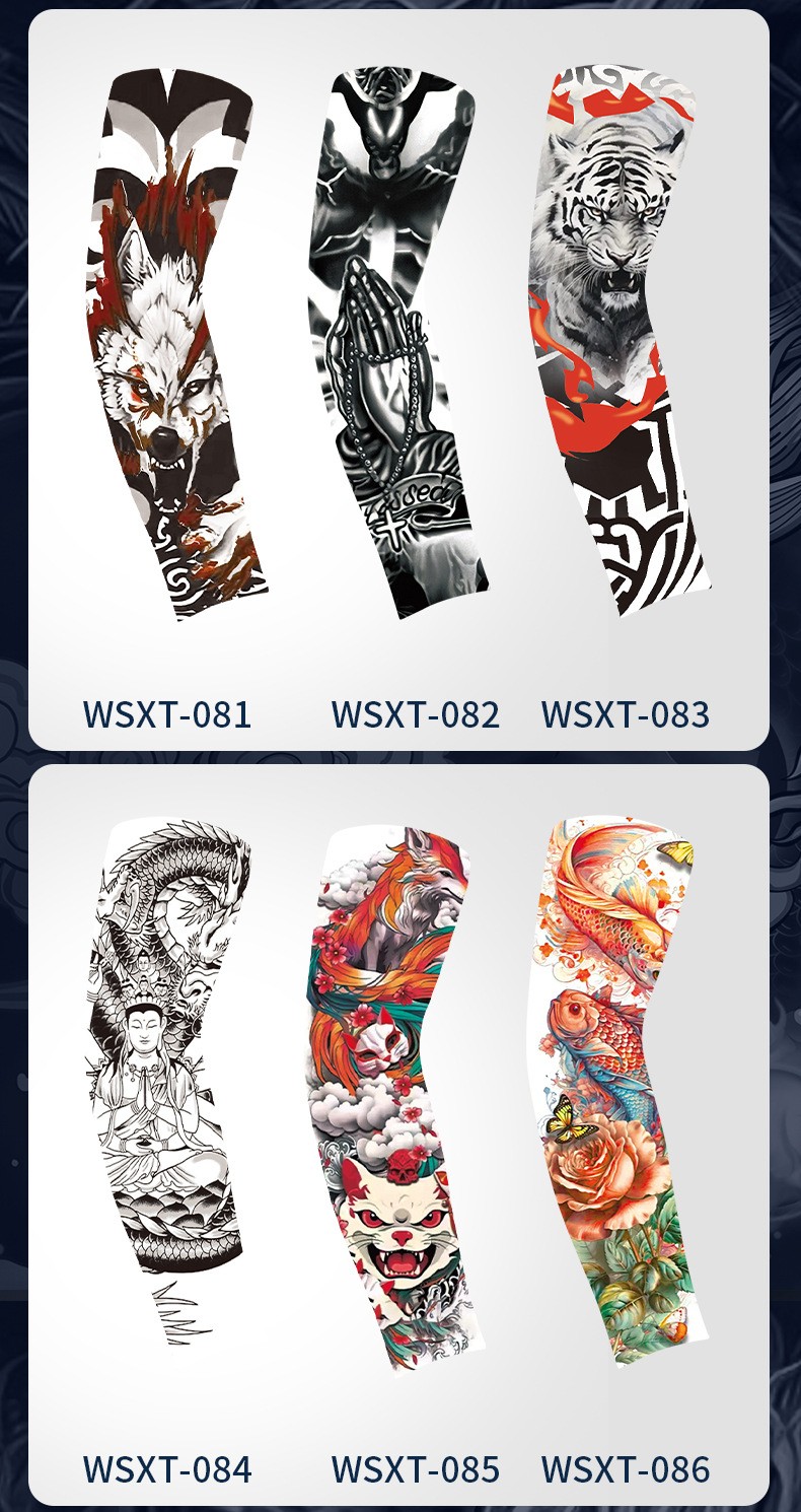 15分鐘前夏季騎行防曬紋身袖套仿真刺青速幹護臂戶外運動遮陽透氣高彈冰袖 - 體驗!!【買二送二】4入組-NT$980